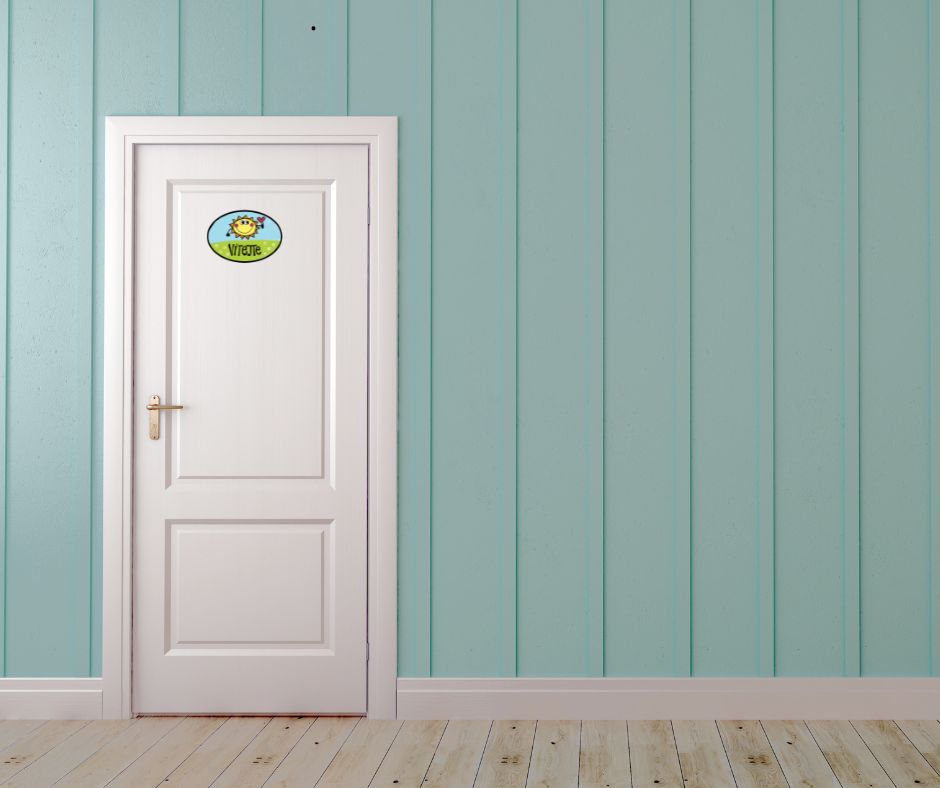 - Cedulky na jednotlivé místnosti - aby návštěva nevešla kam nemá.